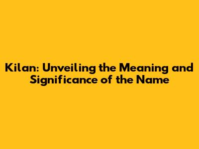 Kilan: Unveiling The Meaning And Significance Of The Name