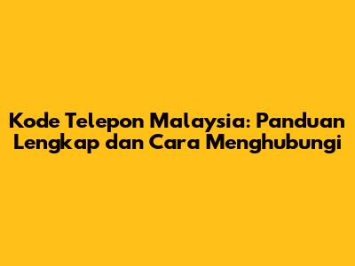 Kode Telepon Malaysia: Info Lengkap & Cara Menghubungi