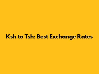 Ksh To Tsh: Best Exchange Rates