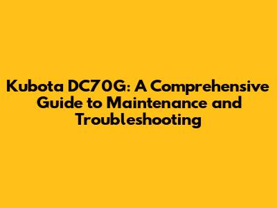 Kubota DC70G: Troubleshooting & Maintenance Tips