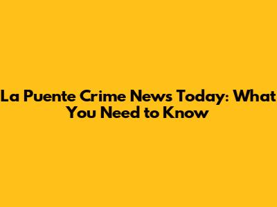 La Puente Crime News Today: What You Need To Know