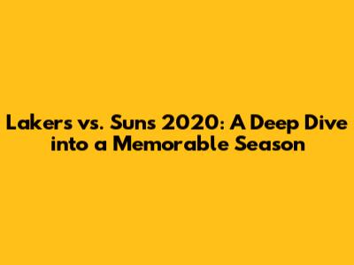 Lakers Vs. Suns 2020: A Deep Dive Into A Memorable Season
