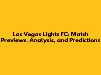 Las Vegas Lights FC: Match Previews, Analysis, And Predictions