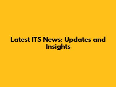Latest ITS News: Updates And Insights