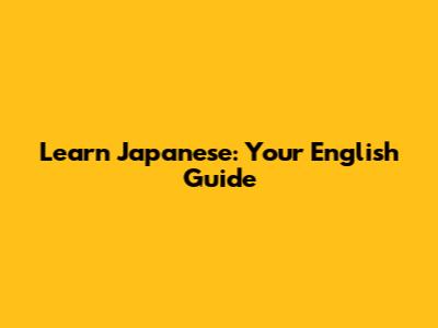 Learn Japanese: Your English Guide