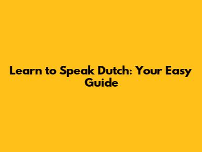 Learn To Speak Dutch: Your Easy Guide