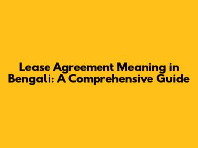 Hey guys! Ever wondered what a lease agreement really means, especially when you need to understand it in Bengali? Well, you're in the right place! A lease agreement, or āĻ­āĻžāĻĄāĻŧāĻž āϚ⧁āĻ•ā§āϤāĻŋ (bhara chukti) in Bengali, is a legally binding contract between a landlord (the owner of the property) and a tenant (the person renting the property). It outlines the terms and conditions under which the tenant can use the property for a specific period, typically in exchange for rent. Understanding the ins and outs of a lease agreement is super important to protect your rights and responsibilities, whether you're a landlord or a tenant. So, let's break down everything you need to know about lease agreements in simple, easy-to-understand terms. Think of it as your go-to guide for navigating the world of rental agreements with confidence!