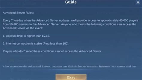 Moonton usually opens up applications for the Advanced Server periodically. Keep an eye on the official Mobile Legends channels (in-game announcements, social media, and the official website) for announcements. When applications are open, you’ll usually need to meet certain requirements. These typically include having a certain account level, a good in-game reputation (avoiding reports and bans), and sometimes, a certain amount of activity. You may also need to provide your game ID and server ID during the application process. Ensure your information is correct to increase your chances of being accepted. The application process may involve filling out a form, answering a questionnaire, or completing a specific task. Pay close attention to the instructions and provide accurate and honest responses. This will increase your chances of acceptance. Be aware that the application process may be competitive, and not everyone will be accepted. Don’t be discouraged if you’re not selected; keep trying and keep improving your gameplay and account standing.