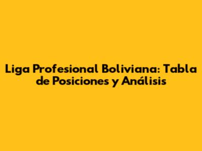 Liga Profesional Boliviana: Tabla De Posiciones Y Análisis