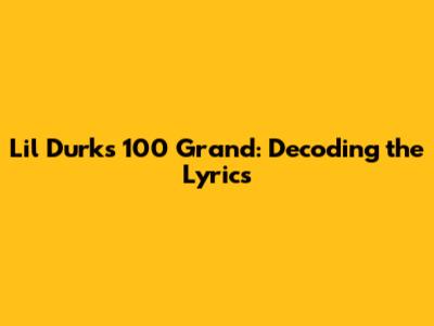 Lil Durk's 100 Grand: Decoding The Lyrics