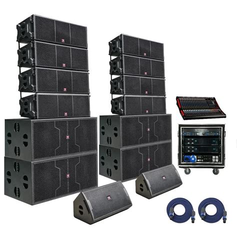 Now, let’s talk bass, folks – the thunder that makes live music feel alive! While the main line array cabinets handle the mids and highs with incredible precision, they generally aren’t designed to produce the deepest, most impactful low frequencies. That’s where subwoofers come in, and they play a crucial role in a complete line array PA system. Subwoofer cabinets are specifically built to reproduce the lowest range of audible sound, typically from around 30 Hz up to 150 Hz or 200 Hz. In a line array setup, subwoofers are often deployed in ground-stacked configurations or sometimes flown alongside the main array. A common practice is to use multiple subwoofers and arrange them in specific patterns (like cardioid or end-fire configurations) on the ground. These arrangements help to control the sound and prevent excessive bass buildup at the rear of the array or on stage, directing the low-end energy predominantly towards the audience. Some larger line array systems might even feature dedicated line array subwoofer cabinets that can be flown and integrated more seamlessly with the mid-high elements, maintaining a similar aesthetic and rigging compatibility. The goal is to provide a powerful, consistent, and well-defined low-end experience that complements the clarity of the main array. Without proper subwoofers, even the best line array system would sound thin and lack the visceral impact that audiences expect from live performances.