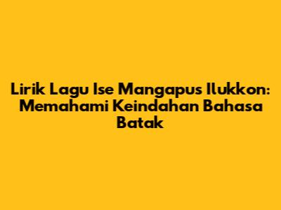Lirik lagu 'Ise Mangapus Ilukkon' adalah salah satu karya musik Batak yang sangat populer dan menyentuh hati banyak orang. Lagu ini, yang jika diterjemahkan berarti 'Siapa yang akan menghapus air mataku', dikenal karena liriknya yang puitis dan melodi yang indah. Dalam artikel ini, kita akan menyelami lebih dalam tentang lirik lagu ini, maknanya, serta bagaimana lagu ini telah menjadi bagian penting dari budaya Batak. Mari kita bedah lebih dalam, guys!
