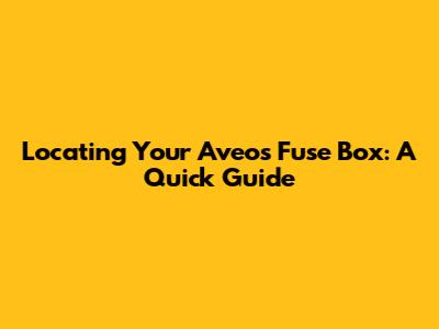 Locating Your Aveo's Fuse Box: A Quick Guide