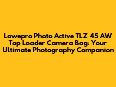 Hey everyone! If you're a photographer looking for a reliable, versatile, and downright awesome camera bag, you've gotta check out the Lowepro Photo Active TLZ 45 AW Top Loader Camera Bag. This bag isn't just a container for your gear; it’s a game-changer that will revolutionize how you carry and protect your precious equipment. Let's dive into what makes this bag a must-have for photographers of all levels.