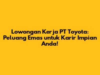 Lowongan kerja di PT Toyota selalu menjadi incaran banyak pencari kerja. Siapa sih yang nggak pengen gabung dengan perusahaan otomotif raksasa ini? Toyota dikenal bukan hanya karena kualitas produknya yang jempolan, tapi juga karena budaya kerja yang profesional dan kesempatan pengembangan karir yang luas. Nah, buat kalian yang lagi semangat cari kerja, artikel ini bakal kasih bocoran lengkap seputar lowongan kerja terbaru di PT Toyota, mulai dari posisi yang tersedia, persyaratan yang harus dipenuhi, hingga perkiraan gaji yang bisa kalian dapatkan. Yuk, simak terus!