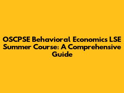 Hey guys! Thinking about diving into the world of behavioral economics? Specifically, the OSCPSE Behavioral Economics course at the London School of Economics (LSE) Summer School? Awesome choice! This guide is designed to give you the lowdown on everything you need to know, from what the course entails to why it’s a fantastic investment in your future. We'll break it all down in a super easy-to-understand way, so you can make an informed decision and get the most out of this incredible opportunity. Whether you're a student, a professional, or just someone curious about how our minds work when it comes to making decisions, stick around! We're going to cover all the crucial aspects to equip you with insights and knowledge about behavioral economics and this specific LSE summer course. You will understand the key concepts and core principles of behavioral economics. This course gives you the opportunity to look into the history of behavioral economics and how it evolved as its own field of study. Understanding the history will help you grasp the current theories and research. This course offers more than just academic enrichment; it provides a transformative learning experience that broadens your understanding of human behavior and its implications in various fields. The OSCPSE Behavioral Economics LSE Summer Course is designed to give you the knowledge and skills to apply behavioral economics principles to real-world problems. With a blend of theoretical concepts, empirical studies, and practical applications, you will explore how cognitive biases, social norms, and emotional factors influence decision-making.