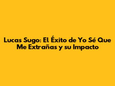 Lucas Sugo: El Éxito De 'Yo Sé Que Me Extrañas' Y Su Impacto