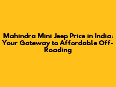 Mahindra Mini Jeep Price In India: Affordable Off-Roading