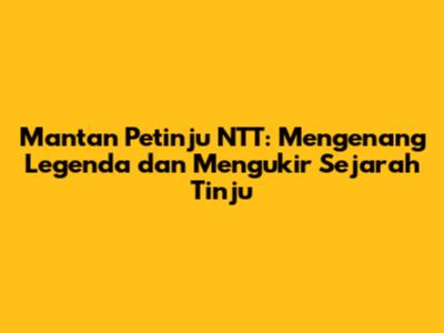 Mantan petinju NTT adalah pahlawan yang telah memberikan kontribusi besar bagi dunia tinju dan bagi masyarakat NTT. Prestasi petinju NTT adalah warisan yang akan terus dikenang dan dihargai. Legenda tinju NTT telah menginspirasi generasi muda dan mengajarkan nilai-nilai penting dalam kehidupan. Kisah petinju NTT adalah bukti bahwa dengan kerja keras dan semangat pantang menyerah, kita bisa meraih mimpi.