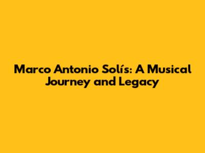 Marco Antonio Solís: A Musical Journey And Legacy