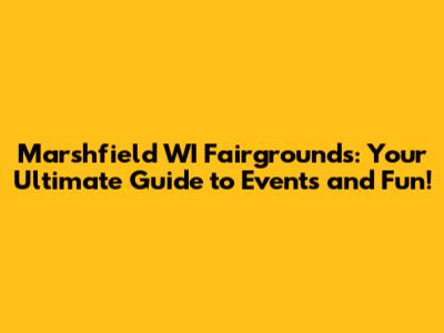 Marshfield WI Fairgrounds: Events & Fun Guide