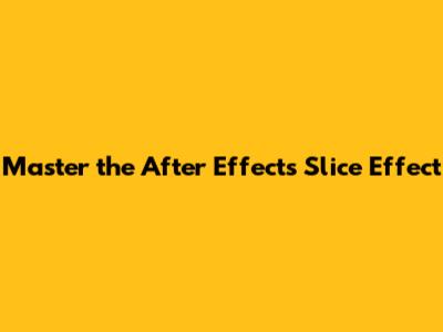 Master The After Effects Slice Effect