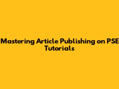 Mastering Article Publishing On PSE Tutorials