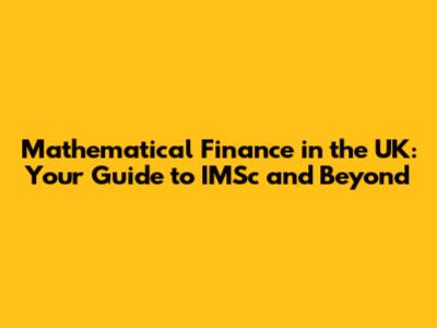Mathematical Finance In The UK: Your Guide To IMSc And Beyond