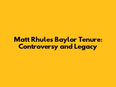 Matt Rhule's Baylor Tenure: Controversy And Legacy