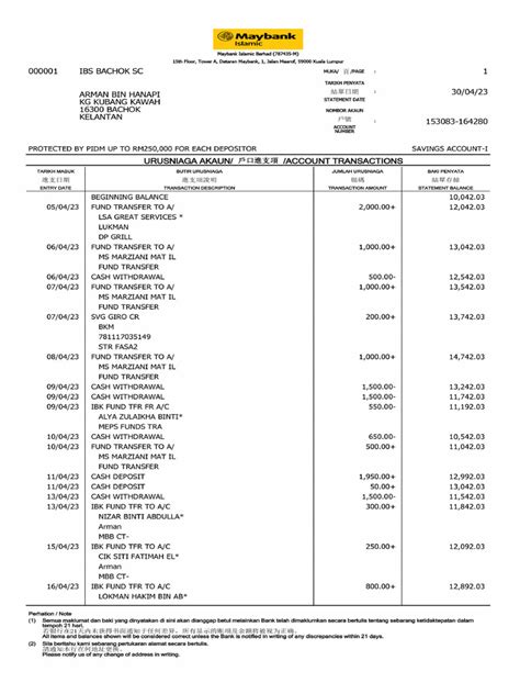 Now, for the juicy part: the transactions . This is the core of your statement. Each transaction will have a date, a description, and an amount. Transactions are usually categorized into debits (money leaving your account) and credits (money entering your account). The description will give you a clue about what the transaction was for – for example, ‘POS Purchase Maybank E-Wallet’, ‘ATM Withdrawal KL’, ‘Online Transfer to John Doe’, or ‘Salary Credit’.