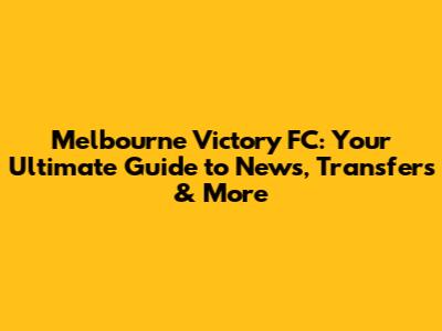 Melbourne Victory FC: Latest News, Transfers & Match Updates
