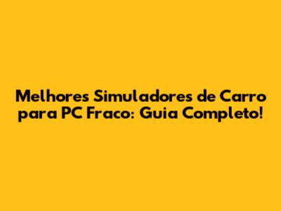 Melhores Simuladores De Carro Para PC Fraco: Guia Completo!