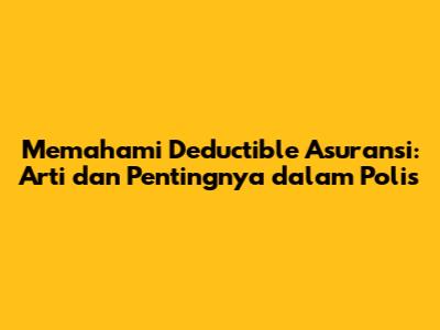 Psepsenosese deductible artinya adalah konsep penting dalam asuransi yang perlu dipahami oleh setiap pemegang polis. Deductible adalah jumlah uang yang harus Anda bayar sebelum perusahaan asuransi membayar klaim Anda. Dengan memahami arti, jenis-jenis, dan faktor yang memengaruhi deductible, Anda dapat membuat keputusan yang tepat saat memilih polis asuransi. Pilihlah deductible yang sesuai dengan kemampuan finansial, kebutuhan perlindungan, dan toleransi risiko Anda. Dengan demikian, Anda dapat memastikan bahwa Anda mendapatkan perlindungan finansial yang memadai jika terjadi risiko yang tidak terduga. Ingatlah selalu untuk membandingkan penawaran dari berbagai perusahaan asuransi dan berkonsultasi dengan ahli jika diperlukan. Dengan pemahaman yang baik tentang deductible, Anda dapat mengelola risiko dengan lebih efektif dan mendapatkan manfaat maksimal dari asuransi yang Anda miliki.