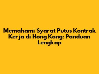 Syarat break kontrak di Hong Kong seringkali menjadi pertanyaan penting bagi banyak pekerja migran, terutama mereka yang bekerja sebagai asisten rumah tangga (ART). Memutuskan kontrak kerja sebelum masa berlaku yang disepakati bisa menjadi situasi yang rumit, namun memahami syarat dan prosedur yang tepat adalah kunci untuk melindungi hak-hak Anda. Artikel ini akan membahas secara mendalam mengenai berbagai aspek yang berkaitan dengan break kontrak di Hong Kong, mulai dari alasan yang diperbolehkan, prosedur yang harus diikuti, hingga konsekuensi yang mungkin timbul. Dengan informasi yang komprehensif ini, diharapkan Anda dapat membuat keputusan yang tepat dan menghindari potensi masalah di kemudian hari.