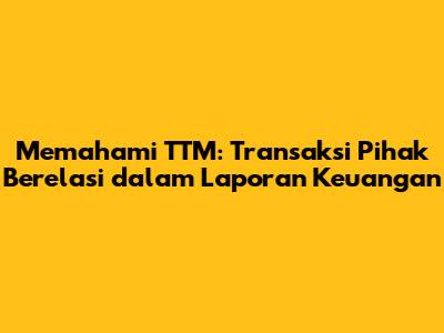 Hai, guys! Pernahkah kalian mendengar istilah TTM dalam konteks laporan keuangan? Jangan salah paham dulu, ya, ini bukan singkatan dari yang biasa kita pikirkan. Dalam dunia akuntansi, TTM adalah singkatan dari Transaksi dengan Pihak Berelasi atau dalam bahasa Inggris disebut Related Party Transactions (RPT). Nah, artikel ini akan membahas tuntas tentang apa itu TTM, mengapa hal ini penting, dan bagaimana dampaknya dalam penyusunan dan analisis laporan keuangan. Kita akan kupas tuntas, mulai dari definisi, contoh, hingga cara mengidentifikasi dan mengungkapkan TTM dalam laporan keuangan. Jadi, simak terus, ya!