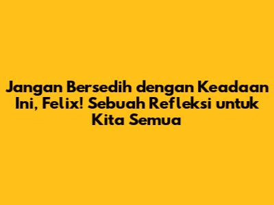Jangan bersedih dengan keadaan ini, Felix! Kata-kata ini bukan hanya sekadar kalimat penyemangat, tetapi juga sebuah ajakan untuk merenung dan mengambil hikmah dari setiap peristiwa dalam hidup. Kita semua, seperti Felix, pasti pernah merasakan kesedihan, kekecewaan, dan berbagai emosi negatif lainnya. Namun, penting untuk diingat bahwa kesedihan bukanlah akhir dari segalanya. Justru, kesedihan bisa menjadi titik awal untuk pertumbuhan dan perubahan positif dalam diri kita. Artikel ini bukan hanya untuk Felix, tetapi juga untuk kita semua yang sedang berjuang menghadapi tantangan hidup. Mari kita telaah bersama bagaimana cara mengatasi kesedihan dan menemukan kembali semangat dalam diri.