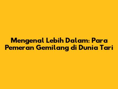 Mengenal Lebih Dalam: Para Pemeran Gemilang Di Dunia Tari