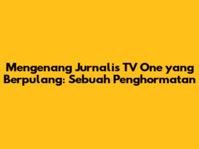 Mengenang Jurnalis TV One Yang Berpulang: Sebuah Penghormatan