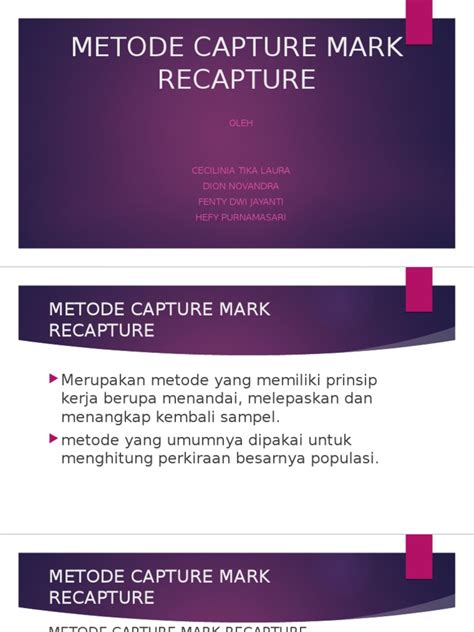 Prinsip dasarnya gampang kok dipahami. Anggap aja ada 100 ekor ayam di kandang. Kita nangkap 10 ekor, kita kasih gelang warna merah di kakinya, terus kita lepasin lagi. Besoknya, kita nangkap lagi 10 ekor ayam. Ternyata, ada 2 ekor yang pake gelang merah. Nah, dari sini, kita bisa bikin perkiraan. Kalau dari 10 ayam yang ditangkap lagi, ada 2 yang bertanda, berarti proporsi ayam bertanda di sampel kedua ini adalah 2 10 atau 20%. Kalau kita asumsikan proporsi ini sama dengan proporsi ayam bertanda di seluruh populasi, berarti 20% dari total populasi ayam di kandang itu adalah ayam yang bertanda (yaitu 10 ekor). Jadi, total populasi ayamnya bisa diperkirakan jadi 10 ekor / 0.20 = 50 ekor. Tapi ini cuma analogi simpel ya, guys. Di dunia nyata, perhitungannya bisa lebih kompleks karena banyak faktor yang harus diperhitungkan.