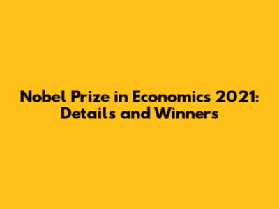 Nobel Prize In Economics 2021: Details And Winners