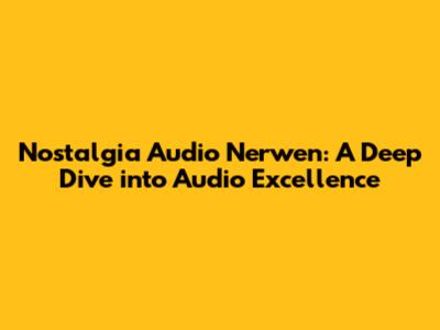 Nostalgia Audio Nerwen: A Deep Dive Into Audio Excellence