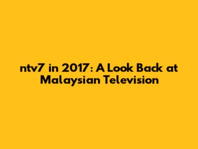 Hey guys! Let's take a trip down memory lane and revisit ntv7 in 2017. Remember tuning in to catch your favorite dramas, news, and entertainment shows? ntv7 was a staple in Malaysian households, offering a diverse range of programs that catered to a wide audience. In this article, we'll delve into what made ntv7 stand out during that year, exploring its popular shows, significant events, and overall impact on the Malaysian media landscape. Get ready for a nostalgic ride as we reminisce about the good old days of ntv7!