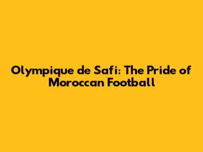 Olympique De Safi: The Pride Of Moroccan Football