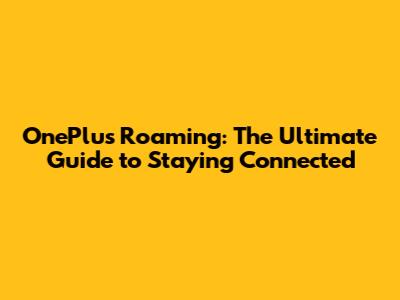 OnePlus Roaming: The Ultimate Guide To Staying Connected