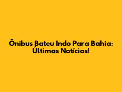 Ônibus Bateu Indo Para Bahia: Últimas Notícias!