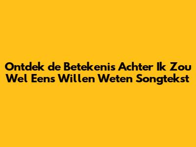 'Ik Zou Wel Eens Willen Weten' songtekst, een titel die veel Nederlanders en Vlamingen aanspreekt. De tekst, vaak geassocieerd met een diep gevoel van nieuwsgierigheid en verlangen, prikkelt de verbeelding. Maar wat betekent deze songtekst nu echt? En waarom resoneert hij zo sterk met zoveel mensen? In dit artikel duiken we diep in de 'Ik Zou Wel Eens Willen Weten' songtekst en proberen we de verborgen lagen te ontdekken. We analyseren de tekstuele elementen, de emotionele lading en de culturele context. Zo krijg je een compleet beeld van wat deze populaire songtekst zo bijzonder maakt. We zullen de woorden ontleden, de betekenis achterhalen en proberen te begrijpen waarom deze zin zo'n krachtige invloed heeft. Dus, maak je klaar om dieper in de wereld van de muziek te duiken en de geheimen van de 'Ik Zou Wel Eens Willen Weten' songtekst te ontdekken!