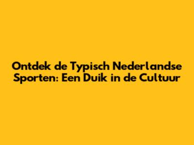 Ontdek De Typisch Nederlandse Sporten: Een Duik In De Cultuur