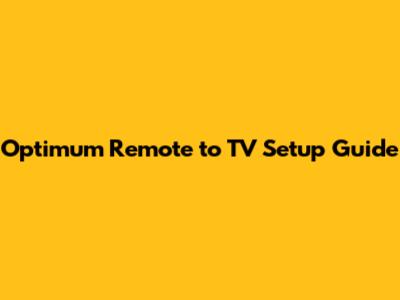 Optimum Remote To TV Setup Guide