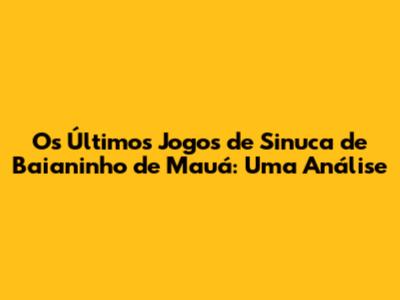 Os Últimos Jogos De Sinuca De Baianinho De Mauá: Uma Análise