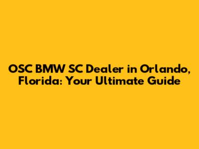 OSC BMW SC Orlando: Your Ultimate Dealership Guide